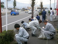 井出組では、環境活動として富士市の美化運動「ふじクリーンパートナー」に登録し、毎月一回会社周辺の清掃活動を行っています。