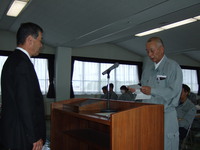 勤続表彰5名(40年1名、30年1名、20年3名)、社長表彰11名(模範賞4名、功績賞1名、技術賞1名、努力賞5名)が表彰され、表彰者を代表して、土木部の秋山次長から謝辞が述べられました。
