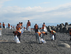今回も静岡県の海洋プラスチックごみ防止「6R県民運動」に賛同登録し、井出組社員と協力会(井出組信栄会)からの参加者約140名が「ふじのくに田子の浦みなと公園」周辺の海岸でプラスチックごみや木くず等の清掃を行いました。