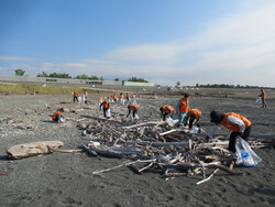 今回も静岡県の海洋プラスチックごみ防止「6R県民運動」に賛同登録し、井出組社員と協力会(井出組信栄会)からの参加者約140名が富士マリンプール周辺の海岸でプラスチックごみやびん・かん等の清掃を行いました。